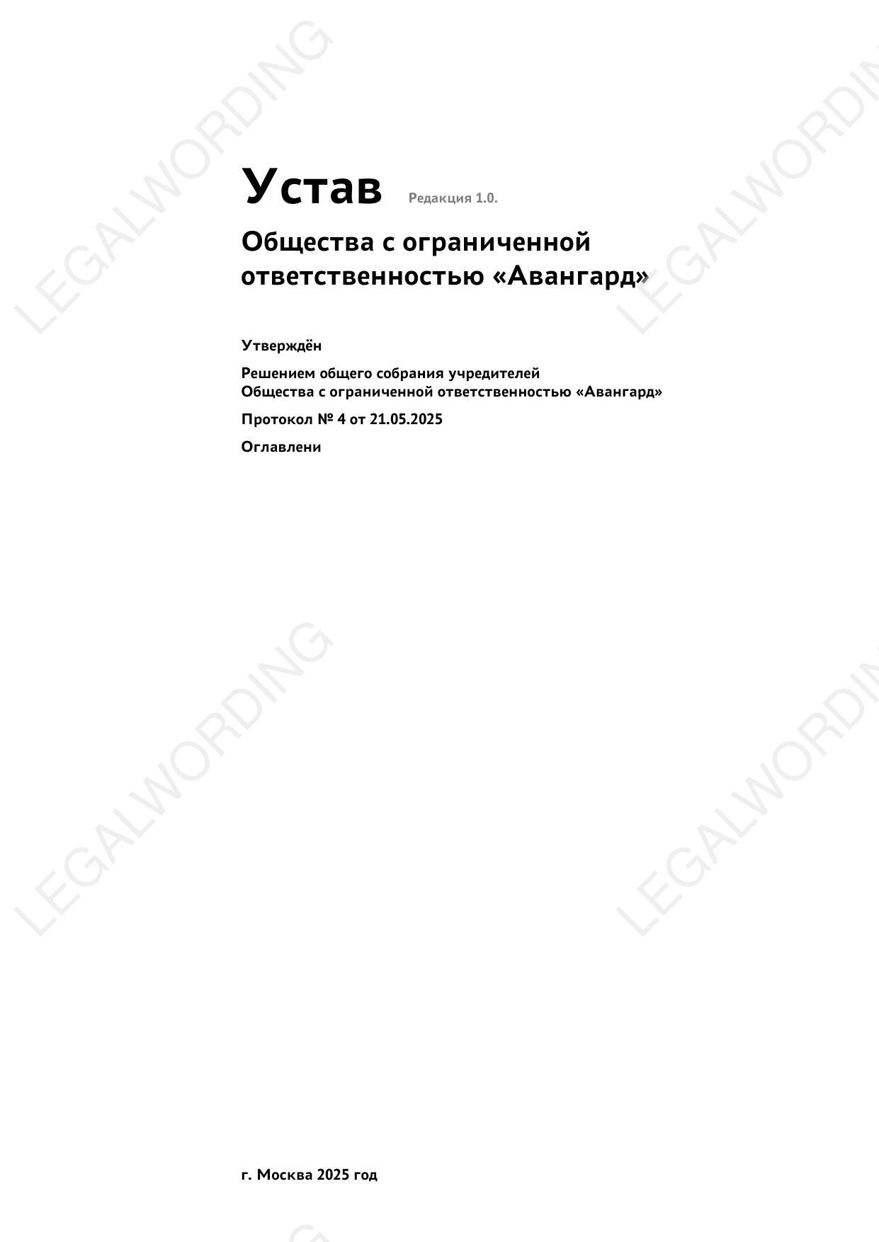 Шаблон устава, разработанный с применением принципов Legal Design.