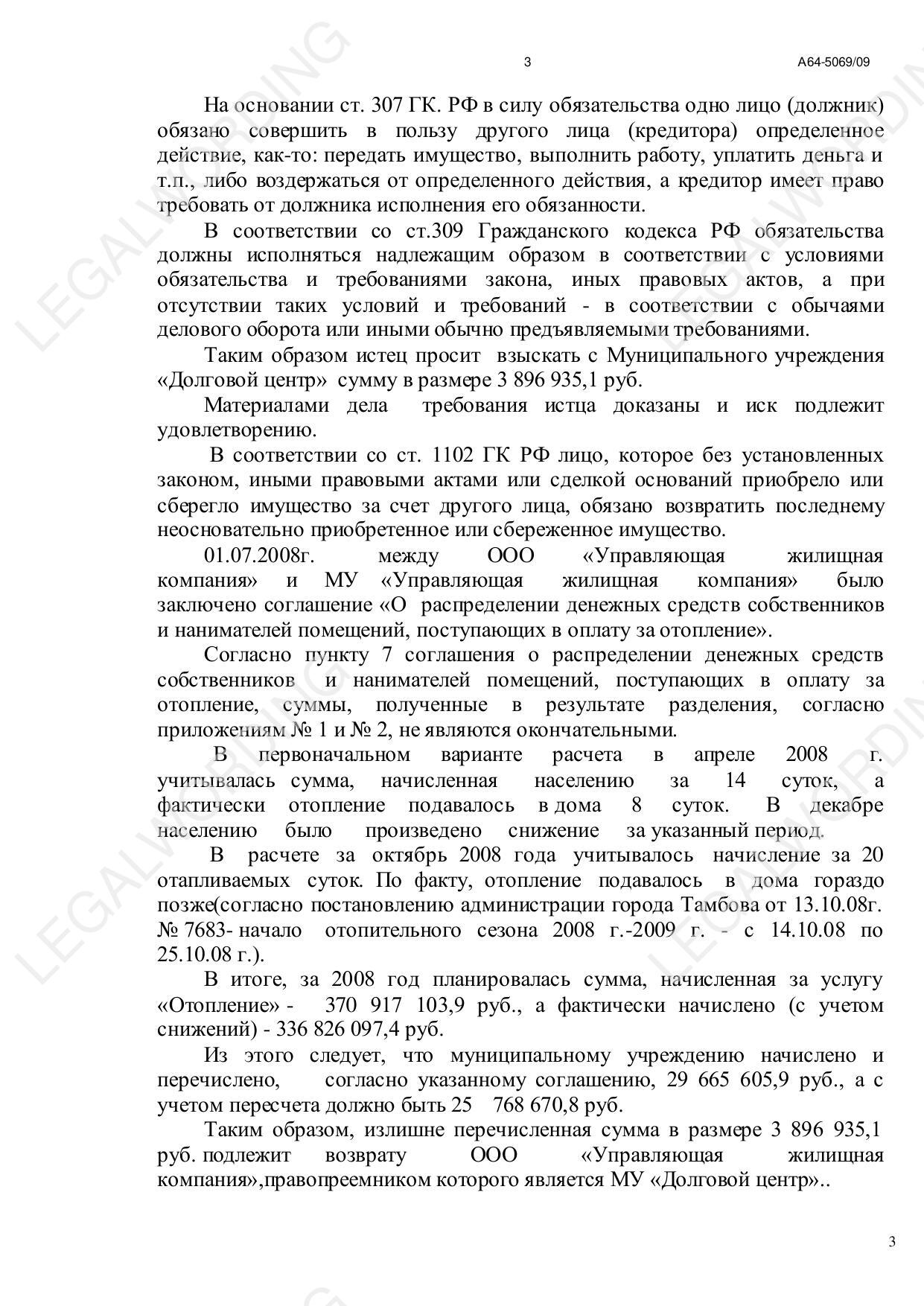 ООО "Управляющая жилищная компания" обратилось к МУ "Управляющая жилищная компания с иском о взыскании излишне перечисленных за отопление в 2008 году денежных средств в размере 3 896 935,10 руб.