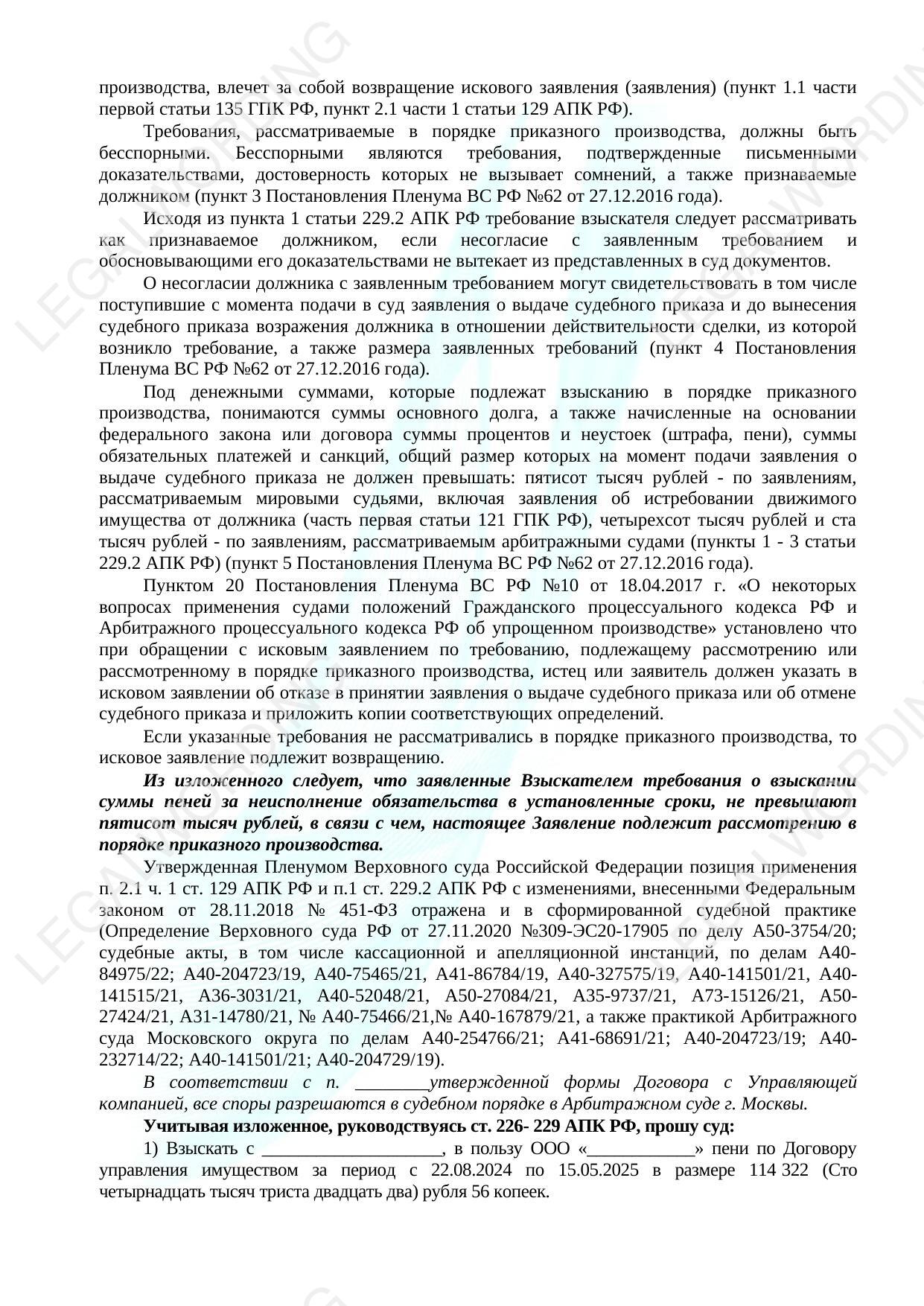 Заявление Управляющей компании о выдаче судебного приказа по пеням.doc